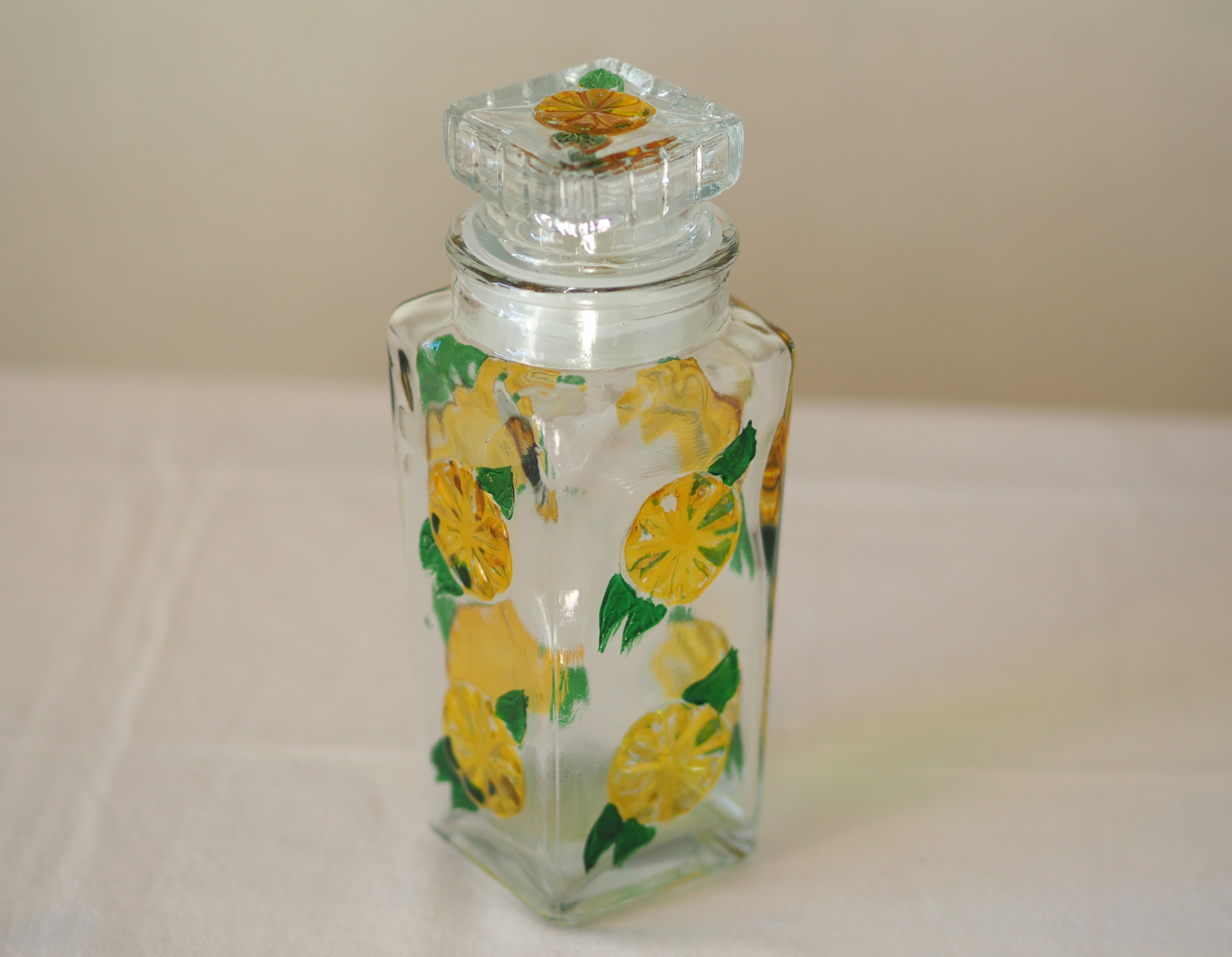 鮮やかな黄色が愛らしい、ガラスの保存瓶です。